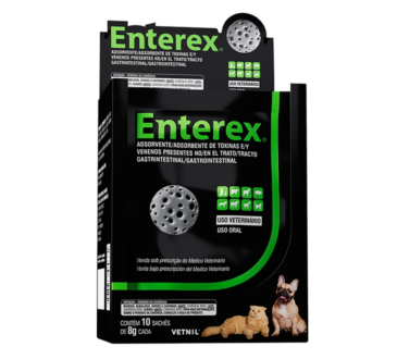 Enterex® está indicado como adsorvente de toxinas e venenos presentes no trato gastrintestinal de equídeos, bovinos, bubalinos, caprinos, ovinos, suínos, nos casos de envenenamentos, intoxicações diversas, além de auxiliar em diarreias e gastroenterites.